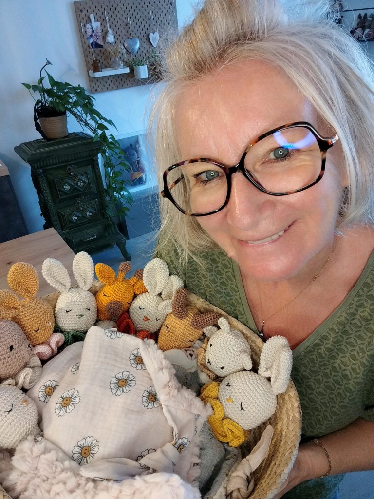 Mon objectif : transmettre chaleur et tendresse à travers des créations artisanales, entièrement faites à la main et pensées pour durer.